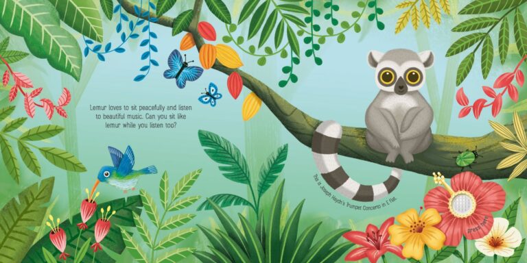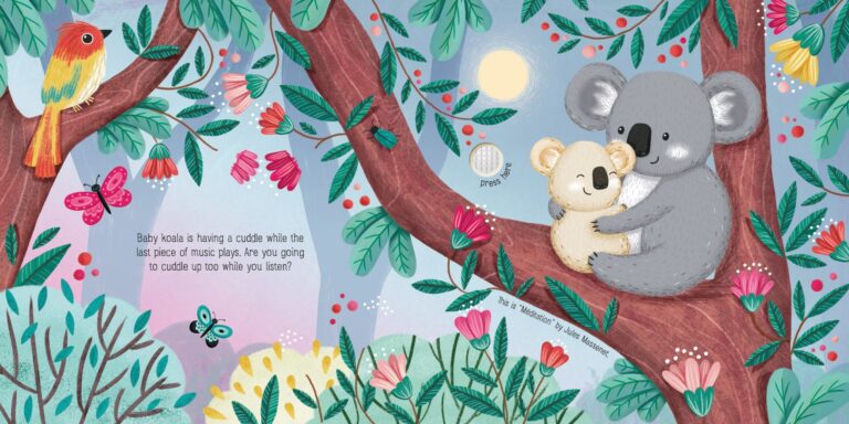 Малите деца ќе сакаат да се опуштат и да уживаат со оваа смирувачка музичка книга. Едноставно притиснете ги страниците за да слушате пет смирувачки, прекрасни класични мелодии, вклучително и специјално аранжирана музика од Шуберт, Хајдн и Форе. Со прекрасни илустрации кои прикажуваат видри, коали и лавови кои уживаат во музиката.