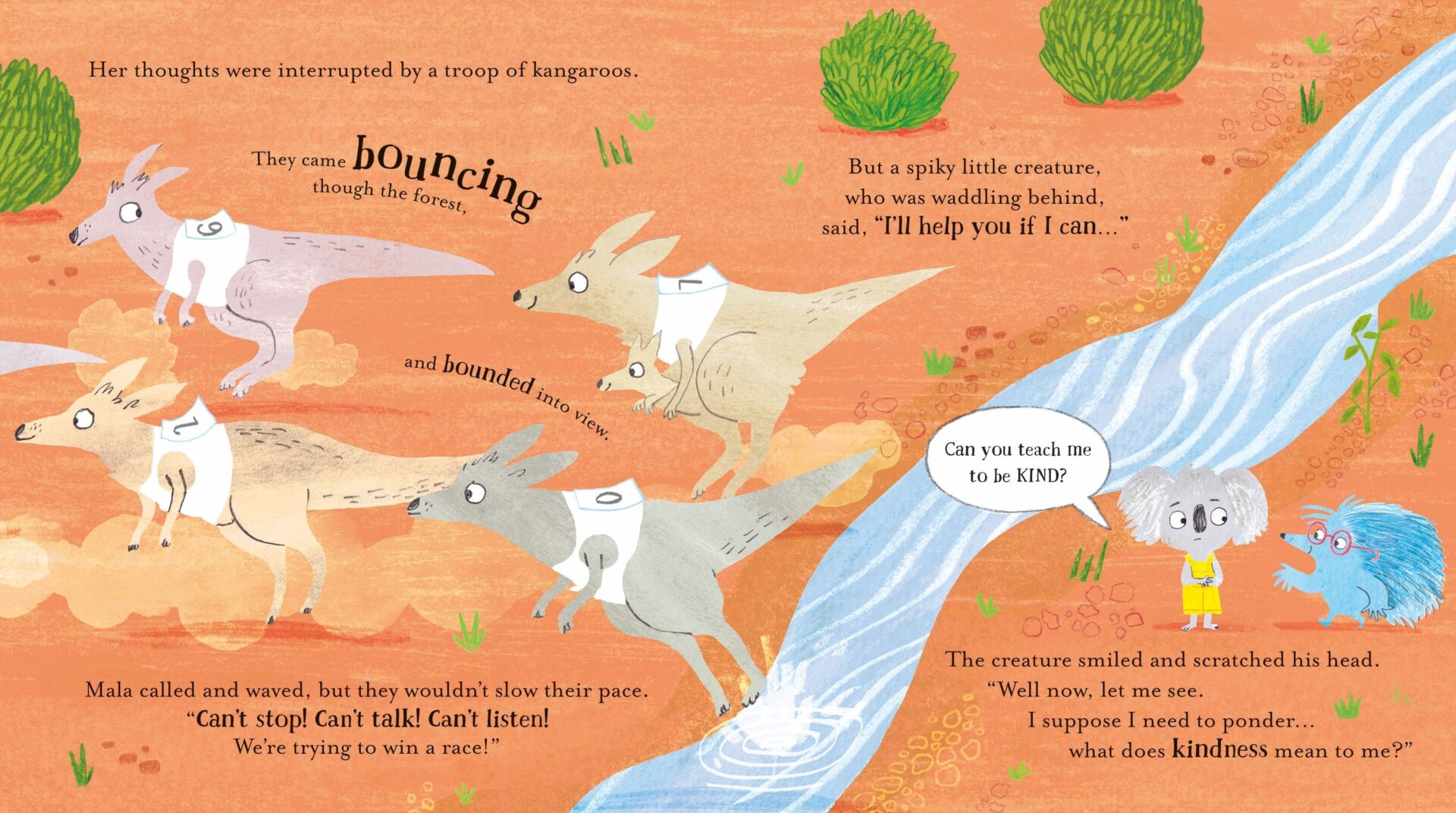 Совршена книга, нежен прирачник за пријателство и добрина. Кога коалата Мала влегува во шумата, едно мало глувче и предлага дека Мала ќе се почувствува подобро ако почне да биде добра. Но како? се прашува Мала. Брзо ќе започне да го споделува својот ручек со неколку птички, ќе му помогне на едно бебе лилјак и ќе ја утеши својата пријателка. Преку сите настани ќе открие дека добрината навистина го прави поубав светот. Оваа лесно читлива римувана приказна со прекрасни илустрации е совршен вовед во добрината.