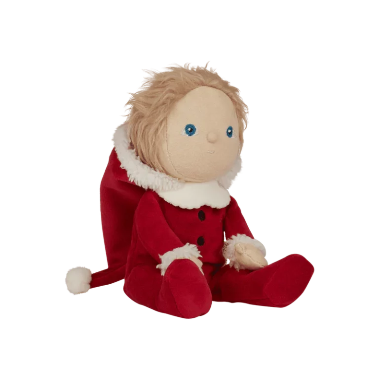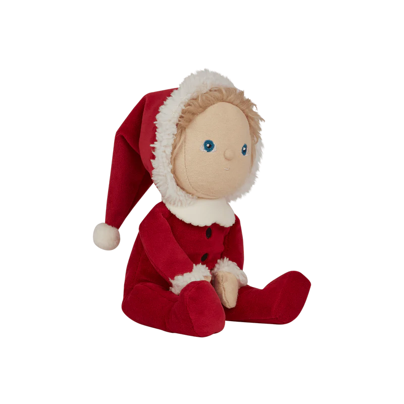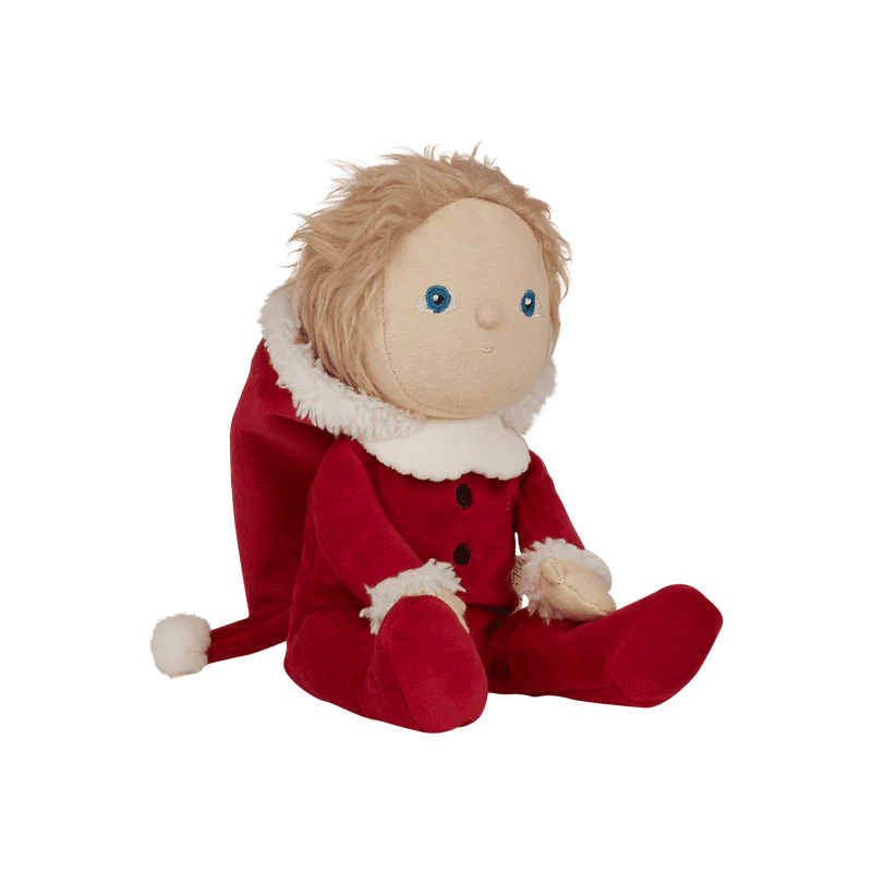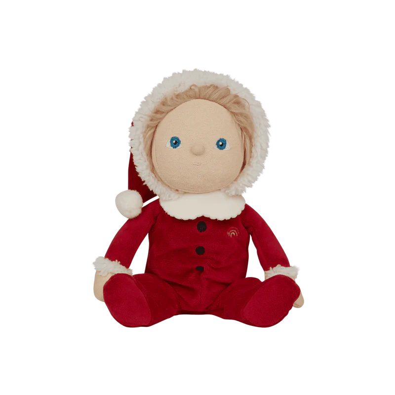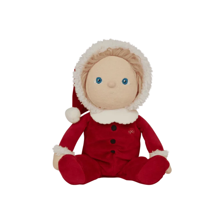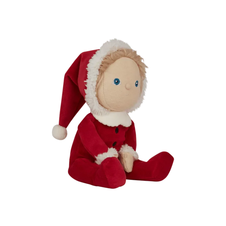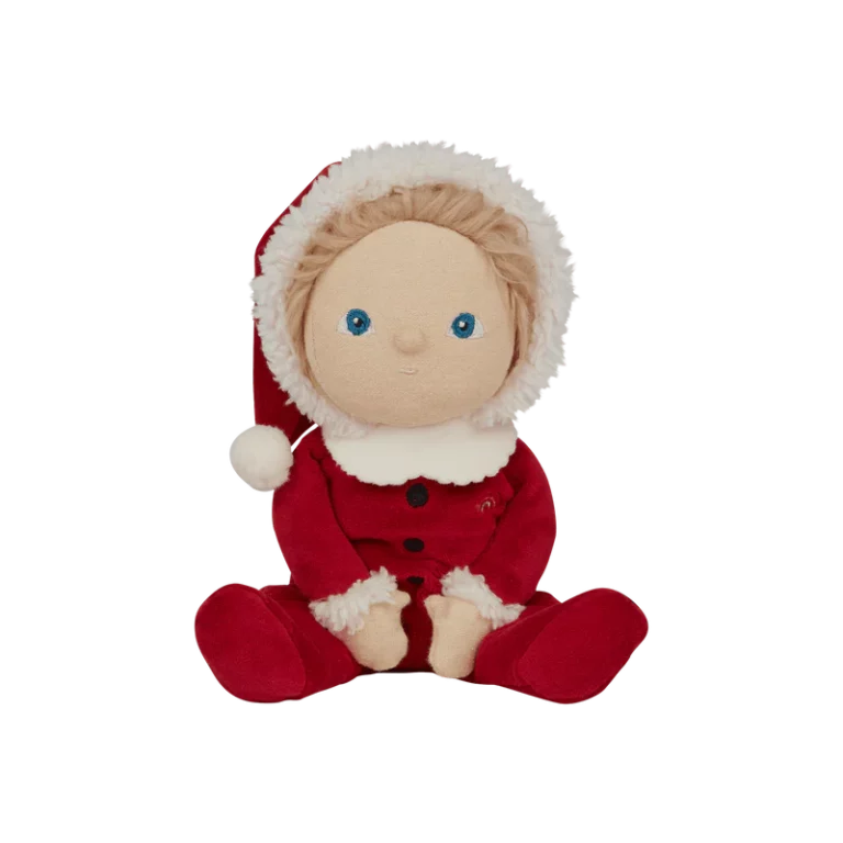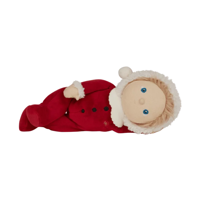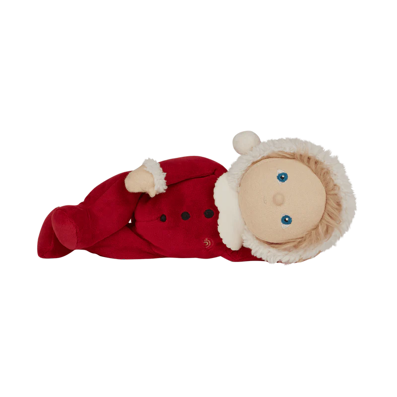 Оваа лимитирана божиќна кукла доаѓа облечена во прекрасен костум на Дедо Мраз во црвен комплет со меки бели украси и весела насмевка. Совршена кукличка за пријатни, најубави меки гушкања и дизајниран за магична празнична забава. Семи малиот Дедо Мразко е прекрасен пријател со празничен шарм. Совршен подарок овие празници за секое детенце!